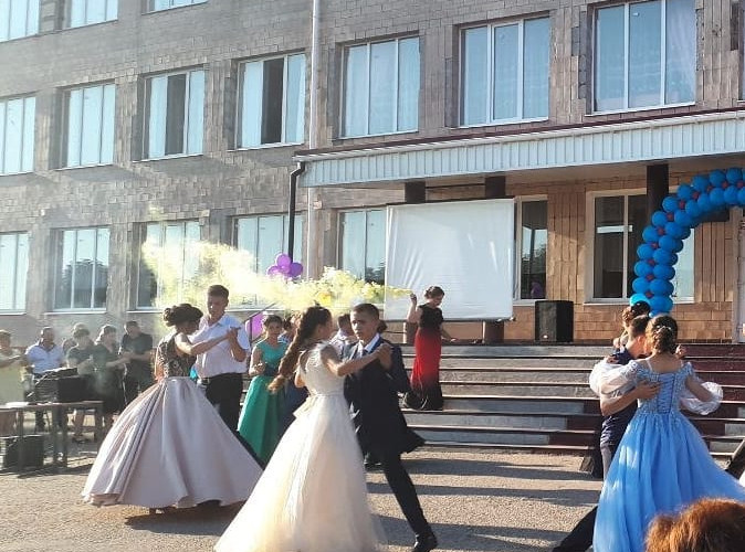 Бал випускний. Танцюють всі навколо. Перлини сліз змахну з засмучених очей. Дитинство безтурботне вже ніколи Не побіжить в блакитну далечінь. Воно залишиться тепер у школі, В яскравій пам’яті у вашій назавжди. І ще не раз наберете доволі З його джерел цілющої води.