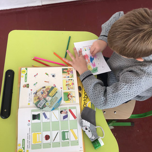 У першому класі учні повторили кольори та розмальовували цікаві схеми. Всі учасники під час заходів були активними та за участь отримали емблему "English".